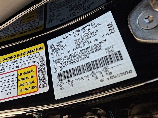 This Vehicle Includes the Following Options: Outer Banks Tech Package+ (B&O Sound System by Bang & Olufsen, Connected Navigation, and HD Radio), 2nd Row Carpeted Seatback, 360-Degree Camera w/Trail & Split View, 4-Wheel Disc Brakes, 6 Speakers, ABS brakes, Air Conditioning, Alloy wheels, AM/FM radio: SiriusXM, AM/FM Stereo, Auto High-beam Headlights, Auto-dimming Rear-View mirror, Automatic temperature control, Brake assist, Compass, Delay-off headlights, Driver door bin, Driver vanity mirror, Dual front impact airbags, Dual front side impact airbags, Electronic Stability Control, Emergency communication system: SYNC 4 911 Assist, Four wheel independent suspension, Front anti-roll bar, Front Bucket Seats, Front Center Armrest, Front Driver/Passenger Seat Back Map Pockets, Front dual zone A/C, Front fog lights, Front License Plate Bracket, Front Parking Sensors, Front reading lights, Fully automatic headlights, Garage door transmitter, Heated door mirrors, Heated front seats, Heated steering wheel, Illuminated entry, Knee airbag, Low tire pressure warning, Memory seat, Occupant sensing airbag, Outside temperature display, Overhead airbag, Overhead console, Panic alarm, Passenger door bin, Passenger vanity mirror, Power door mirrors, Power driver seat, Power Moonroof, Power passenger seat, Power steering, Power windows, Premium Trimmed Front Bucket Seats w/Ebony/Roast, Radio data system, Rain sensing wipers, Rear anti-roll bar, Rear Parking Sensors, Rear reading lights, Rear seat center armrest, Rear window defroster, Rear window wiper, Remote keyless entry, Reverse Brake Assist, Security system, SiriusXM, Speed control, Speed-sensing steering, Speed-Sensitive Wipers, Split folding rear seat, Steering wheel mounted audio controls, SYNC 4 w/Enhanced Voice Recognition, Tachometer, Telescoping steering wheel, Tilt steering wheel, Traction control, Trip computer, Variably intermittent wipers, and Wheels: 18 Ebony Black-Painted Aluminum.