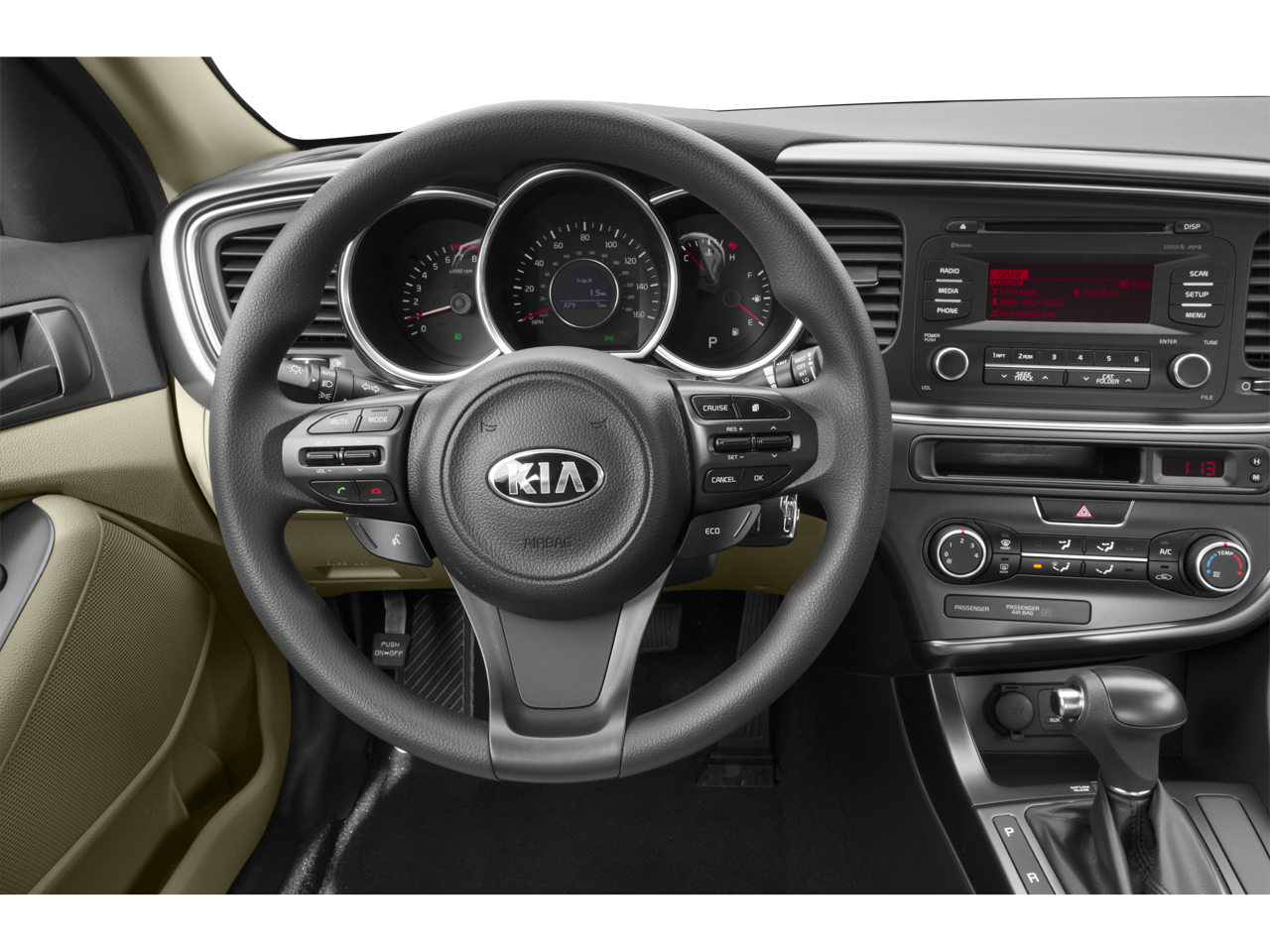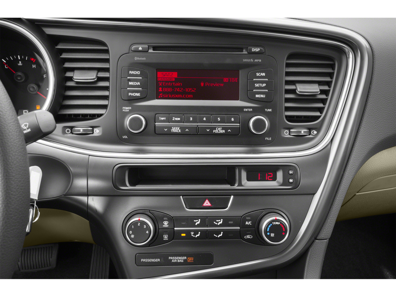 Inside, the Optima LX offers a well-appointed and comfortable cabin, featuring Clean Tex Cloth Seat Trim, a Front Center Armrest, and a Split Folding Rear Seat, providing ample space and versatility for both passengers and cargo. The vehicle also boasts a comprehensive infotainment system, including a CD Player, AM/FM/SiriusXM Radio, and Steering Wheel Mounted Audio Controls, keeping you entertained and connected throughout your journey.