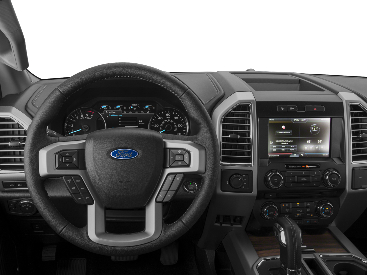 This Vehicle Includes the Following Options: Equipment Group 501A Mid (110V/400W Outlet, BLIS Blind Spot Information System, Power Glass Sideview Mirr w/Body-Color Skull Caps, Remote Start System w/Remote Tailgate Release, Reverse Sensing System, and Universal Garage Door Opener), GVWR: 6,500 lbs Payload Package, Lariat Chrome Appearance Package (Chrome 3-Bar Style Grille w/Chrome Surround, Chrome Angular Step Bars, Chrome Skull Caps on Exterior Mirrors, and Wheels: 18 Chrome-Like PVD), Trailer Tow Package (Class IV Trailer Hitch Receiver and Pro Trailer Backup Assist), 4WD, 18 Machined-Aluminum Wheels, 3.55 Axle Ratio, 4-Wheel Disc Brakes, 7 Speakers, ABS brakes, Adjustable pedals, Air Conditioning, Alloy wheels, AM/FM radio: SiriusXM, Auto-dimming door mirrors, Auto-dimming Rear-View mirror, Automatic temperature control, Brake assist, Bumpers: chrome, CD player, Compass, Delay-off headlights, Driver door bin, Driver vanity mirror, Dual front impact airbags, Dual front side impact airbags, Electronic Stability Control, Exterior Parking Camera Rear, Front anti-roll bar, Front Center Armrest w/Storage, Front dual zone A/C, Front fog lights, Front reading lights, Front wheel independent suspension, Fully automatic headlights, Heated door mirrors, Heated front seats, Illuminated entry, Leather-Trimmed 40/20/40 Front Seat, Low tire pressure warning, Memory seat, Occupant sensing airbag, Outside temperature display, Overhead airbag, Overhead console, Panic alarm, Passenger door bin, Passenger vanity mirror, Pedal memory, Power door mirrors, Power driver seat, Power passenger seat, Power steering, Power windows, Radio data system, Radio: Single-CD w/SiriusXM Satellite, Rear reading lights, Rear seat center armrest, Rear step bumper, Rear window defroster, Remote keyless entry, Security system, Speed control, Speed-sensing steering, Split folding rear seat, Steering wheel mounted audio controls, SYNC 3, Tachometer, Telescoping steering wheel, Tilt steering wheel, Traction control, Trip computer, Turn signal indicator mirrors, Variably intermittent wipers, Ventilated front seats, and Voltmeter.