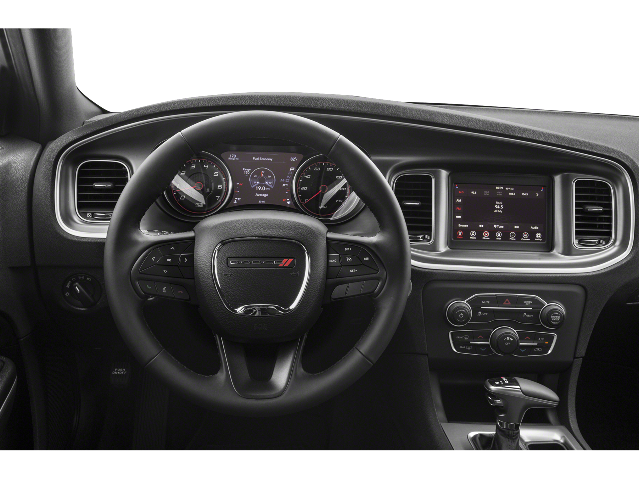 THIS VEHICLE INCLUDES THE FOLLOWING FEATURES AND OPTIONS: Blacktop Package (Black 1-Piece Performance Spoiler, Dodge Grille Badge, Gloss Black Fascia Applique, Gloss Black I/P Cluster Trim Rings, and Satin Black Charger Decklid Badge), Quick Order Package 29G, Black Cloth, 4-Wheel Disc Brakes, 6 Speakers, ABS brakes, Air Conditioning, Alloy wheels, AM/FM radio: SiriusXM, Anti-whiplash front head restraints, Apple CarPlay/Android Auto, Brake assist, Bumpers: body-color, Cloth Sport Seat, Compass, Delay-off headlights, Driver door bin, Driver vanity mirror, Dual front impact airbags, Dual front side impact airbags, Electronic Stability Control, Four wheel independent suspension, Front anti-roll bar, Front Bucket Seats, Front Center Armrest, Front dual zone A/C, Front reading lights, Fully automatic headlights, Illuminated entry, Knee airbag, Leather Shift Knob, Low tire pressure warning, Occupant sensing airbag, Outside temperature display, Overhead airbag, Overhead console, Panic alarm, ParkView Rear Back-Up Camera, Passenger door bin, Passenger vanity mirror, Power 4-Way Driver Lumbar Adjust, Power door mirrors, Power driver seat, Power steering, Power windows, Radio: Uconnect 4 w/7 Display, Rear anti-roll bar, Rear Armrest w/Cupholder Seat, Rear reading lights, Rear seat center armrest, Rear window defroster, Remote keyless entry, Speed control, Speed-Sensitive Wipers, Split folding rear seat, Steering wheel mounted audio controls, Tachometer, Telescoping steering wheel, Tilt steering wheel, Traction control, Trip computer, Variably intermittent wipers, Wheels: 17 x 7.0 Painted Cast Aluminum, and Wheels: 20 x 8.0 Black Noise Painted.