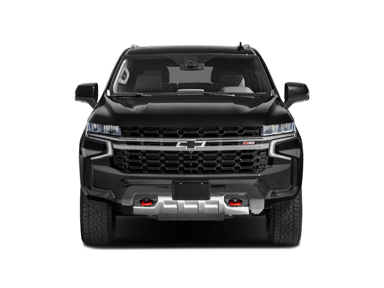 Exterior styling is enhanced by the bold Z71 off-road package, featuring rugged black tubular assist steps, high-approach angle front fascia, and distinctive red recovery hooks. The stunning Cherry Red Tintcoat paint adds a touch of elegance to this capable and versatile SUV.