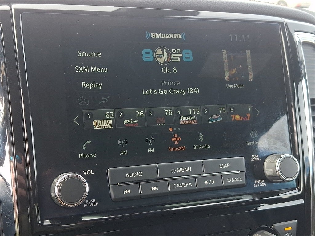 - Radio: NissanConnect w/Navigation -inc: 9" touchscreen display, 12 speaker Fender premium audio system, Apple CarPlay, Android Auto, HD Radio, SiriusXM satellite radio, SiriusXM Traffic, SiriusXM Travel Link w/weather, fuel prices, movie listings, stock info, sports and parking, TomTom weather, Nissan door to door navigation w/3D building graphics and satellite imagery, online POI search, over-the-air map updates and online premium traffic information, 2-USB (1 type A, 1 type C) connection ports for iPod interface and other compatible devices, 2 USB A ports (charge only), Bluetooth® hands-free phone system, streaming audio via Bluetooth®, hands-free text messaging assistant, Nissan Connect services, WiFi hotspot, Nissan voice recognition for navigation and audio, Siri Eyes Free and follow me home function
