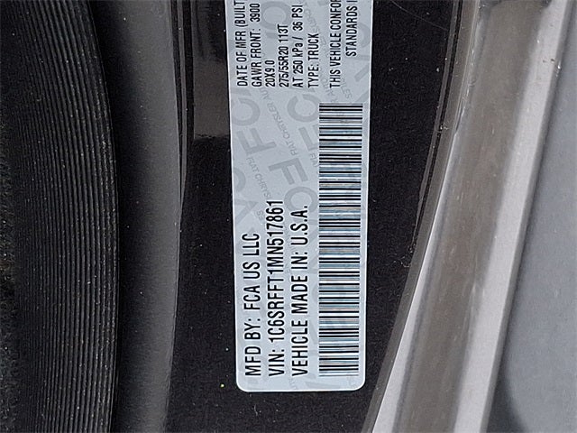 This Vehicle Includes the Following Options: Bed Utility Group (MOPAR 4 Adjustable Cargo Tie-Down Hooks, MOPAR Deployable Bed Step, MOPAR Spray In Bedliner, and Pick-Up Box Lighting), Big Horn Level 2 Equipment Group (115V Auxiliary Power Outlet, 115V Auxiliary Rear Power Outlet, 2nd Row In Floor Storage Bins, 400W Inverter, Air Conditioning ATC w/Dual Zone Control, Auto-Dimming Exterior Driver Mirror, Auto-Dimming Rear-View Mirror, Black Premium Power Mirrors, Class IV Receiver Hitch, Cluster 7.0 TFT Color Display, Exterior Mirrors Courtesy Lamps, Exterior Mirrors w/Supplemental Signals, Foam Bottle Insert (Door Trim Panel), For More Info, Call 800-643-2112, Glove Box Lamp, Heated Front Seats, Heated Steering Wheel, Media Hub w/2 Charge Only USBs, ParkSense Front/Rear Park Assist w/Stop, Power 4-Way Driver Lumbar Adjust, Power 8-Way Driver Seat, Power Adjustable Pedals, Power-Folding Mirrors, Rear Dome w/On/Off Switch Lamp, Rear Power Sliding Window, Rear Window Defroster, Security Alarm, SiriusXM Radio Service, Sun Visors w/Illuminated Vanity Mirrors, and Universal Garage Door Opener), Night Edition (3 Rear Seat Head Restraints, 4 Way Front Headrests, Accent Color Premium Power Mirrors, Anti-Spin Differential Rear Axle, Black Exterior Truck Badging, Black Headlamp Bezels, Black Interior Accents, Black Painted Exterior Mirrors Caps, Body Color Front Bumper, Body Color Rear Bumper w/Step Pads, Bucket Seats, Center Console Parts Module, Deluxe Cloth Bucket Seats, Dual Exhaust w/Black Tips, Exterior Mirrors w/Memory, Front Seat Back Map Pockets, Full Length Floor Console, Manual Adjust 4-Way Front Passenger Seat, Rear 60/40 Folding Seat, and Wheels: 20 x 9.0 Premium Paint/Polished), Quick Order Package 23Z Big Horn (Big Horn Badge), Quick Order Package 27Z Big Horn, 3.21 Rear Axle Ratio, 4-Wheel Disc Brakes, 40/20/40 Split Bench Seat, 48V Belt Starter Generator, 6 Speakers, ABS brakes, Air Conditioning, Alloy wheels, AM/FM radio, Black Exterior Mirrors, Brake assist, Bumpers: chrome, Cloth Bench Seat, Compass, Delay-off headlights, Driver door bin, Dual front impact airbags, Dual front side impact airbags, Electronic Stability Control, Front anti-roll bar, Front Center Armrest w/Storage, Front fog lights, Front License Plate Bracket, Front reading lights, Front wheel independent suspension, Fully automatic headlights, GPS Antenna Input, Heated door mirrors, Illuminated entry, Integrated Voice Command w/Bluetooth®, Leather steering wheel, Low tire pressure warning, Mopar Black Tubular Side Steps, MOPAR Front & Rear Rubber Floor Mats, Occupant sensing airbag, Outside temperature display, Overhead airbag, Overhead console, Panic alarm, ParkView Rear Back-Up Camera, Passenger door bin, Passenger vanity mirror, Power door mirrors, Power steering, Power windows, Radio data system, Radio: Uconnect 3 w/5 Display, Radio: Uconnect 4 w/8.4 Display, Rear anti-roll bar, Rear seat center armrest, Rear step bumper, Remote keyless entry, Remote Start System, Speed control, Split folding rear seat, Steering wheel mounted audio controls, Tachometer, Telescoping steering wheel, Tilt steering wheel, Traction control, Trip computer, Variably intermittent wipers, Voltmeter, and Wheels: 18 x 8 Cast-Aluminum Painted.