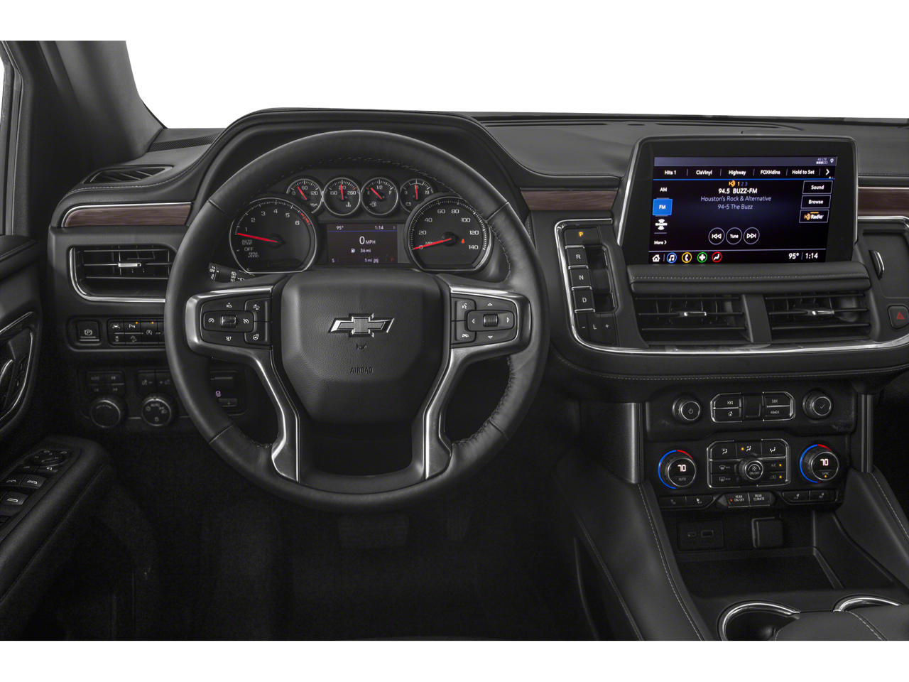 This Vehicle Includes the Following Options: Preferred Equipment Group 2Z7 (1st & 2nd Row Color-Keyed Carpeted Floor Mats, 2-Speed Active Electronic AutoTrac Transfer Case, Auto-Dimming Inside Rear-View Mirror, Automatic Stop/Start, Black Tubular Assist Steps, Bose 9-Speaker Stereo Audio System Feature, Bright Front & Rear Door Sill Plates, Color-Keyed Carpeting Floor Covering, Driver & Front Outboard Passenger Airbags, Enhanced Driver Information Center, Floor Console w/Storage Area, Front High-Approach Angle Fascia, Hands-Free Rear Power Programmable Liftgate, Hill Descent Control, Infotainment Display, Leather-Wrapped Steering Wheel, LED Daytime Running Lamps, Memory Settings for Driver, Red Horizontal-Mounted Recovery Hooks, Remote Start, SiriusXM Radio w/360L, Start/Stop System Disable Button, Universal Home Remote, and Wireless Charging), 4WD, Gideon/Very Dark Atmosphere Leather, 10-Way Power Driver & Passenger Seat Adjusters, 2nd Row Manual Bucket Seats, 3.23 Rear Axle Ratio, 3rd row seats: split-bench, 4-Wheel Disc Brakes, 9 Speakers, ABS brakes, Air Conditioning, Alloy wheels, AM/FM radio: SiriusXM with 360L, Apple CarPlay/Android Auto, Auto High-beam Headlights, Auto-dimming Rear-View mirror, Automatic temperature control, Brake assist, Bumpers: body-color, Compass, Delay-off headlights, Driver door bin, Driver vanity mirror, Dual front impact airbags, Dual front side impact airbags, Electronic Stability Control, Emergency communication system: OnStar and Chevrolet connected services capable, Four wheel independent suspension, Front anti-roll bar, Front Bucket Seats, Front Center Armrest, Front dual zone A/C, Front High-Back Reclining Bucket Seats, Front reading lights, Fully automatic headlights, Garage door transmitter, Heated door mirrors, Heated Driver & Front Passenger Seats, Heated front seats, Illuminated entry, Leather steering wheel, Leather-Appointed Seat Trim, Low tire pressure warning, Memory seat, Navigation System, Not Equipped w/Steering Column Lock, Occupant sensing airbag, Outside temperature display, Overhead airbag, Overhead console, Panic alarm, Passenger door bin, Passenger vanity mirror, Power door mirrors, Power driver seat, Power Liftgate, Power passenger seat, Power steering, Power windows, Premium audio system: Chevrolet Infotainment System 3, Premium Smooth Ride Suspension, Radio: Chevrolet Infotainment 3 Premium System, Rain sensing wipers, Rear air conditioning, Rear anti-roll bar, Rear reading lights, Rear seat center armrest, Rear window defroster, Rear window wiper, Remote keyless entry, Roof rack: rails only, Security system, Speed control, Speed-sensing steering, Split folding rear seat, Spoiler, Steering wheel mounted audio controls, Tachometer, Telescoping steering wheel, Tilt steering wheel, Traction control, Trip computer, Variably intermittent wipers, Voltmeter, and Wheels: 20 x 9 Machined Aluminum.