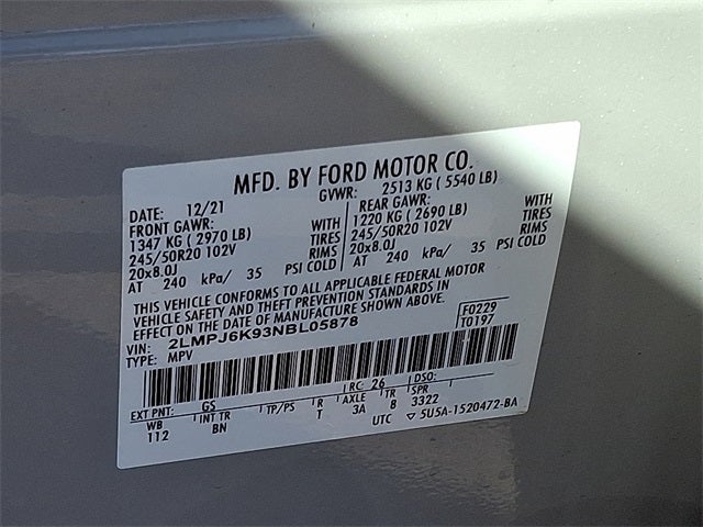 This Vehicle Includes the Following Options: Equipment Group 201A (Phone As A Key and Wheels: 20 Prem Painted Bright Machined Aluminum), Lincoln Co-Pilot360 1.0 Plus Package (360 Degree Camera w/Rear Camera Wash, Active Park Assist 2.0, Adaptive Cruise Control, Distance Indication & Alert, Evasive Steering Assist, and Forward-Side-Rear Parking Sensors), 10 Speakers, 3.80 Axle Ratio, 4-Wheel Disc Brakes, ABS brakes, Air Conditioning, Alexa Built-In, Alloy wheels, AM/FM radio: SiriusXM with 360L, Auto High-beam Headlights, Auto tilt-away steering wheel, Auto-dimming door mirrors, Auto-dimming Rear-View mirror, Automatic temperature control, Brake assist, Bumpers: body-color, Compass, Delay-off headlights, Driver door bin, Driver vanity mirror, Dual front impact airbags, Dual front side impact airbags, Electronic Stability Control, Emergency communication system: 911 Assist, Four wheel independent suspension, Front anti-roll bar, Front Bucket Seats, Front Center Armrest w/Storage, Front dual zone A/C, Front reading lights, Fully automatic headlights, Garage door transmitter: HomeLink, Heated door mirrors, Heated front seats, Heated rear seats, Heated steering wheel, Illuminated entry, Knee airbag, Leather steering wheel, Low tire pressure warning, Memory seat, Navigation System, Occupant sensing airbag, Outside temperature display, Overhead airbag, Overhead console, Panic alarm, Passenger door bin, Passenger vanity mirror, Power door mirrors, Power driver seat, Power Liftgate, Power moonroof: Panoramic Vista Roof, Power passenger seat, Power steering, Power windows, Prem Lthr-Trimmed Heated/Ventilated Captain Seats, Radio data system, Radio: AM/FM/HD Audio System, Rain sensing wipers, Rear anti-roll bar, Rear reading lights, Rear seat center armrest, Rear window defroster, Rear window wiper, Remote keyless entry, Satin Roof Rack Side Rails w/o Crossbars, Security system, Speed control, Speed-sensing steering, Speed-Sensitive Wipers, Split folding rear seat, Spoiler, Steering wheel memory, Steering wheel mounted A/C controls, Steering wheel mounted audio controls, SYNC 4 w/Enhanced Voice Recognition, Tachometer, Telescoping steering wheel, Tilt steering wheel, Traction control, Trip computer, Turn signal indicator mirrors, Variably intermittent wipers, Ventilated front seats, and Wheels: 18 Premium Painted Bright Machined Alum.
