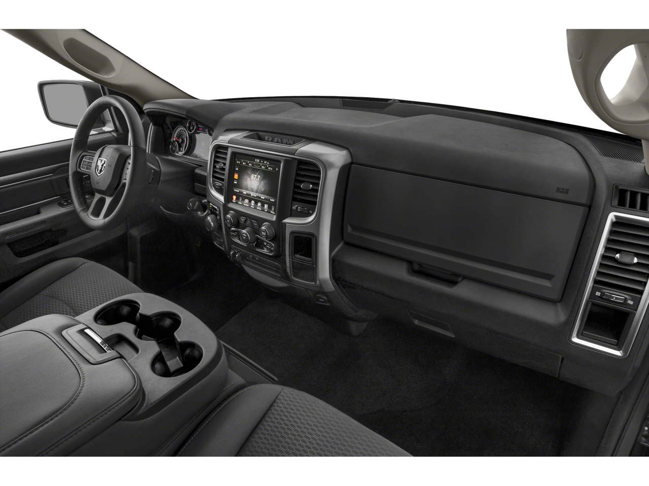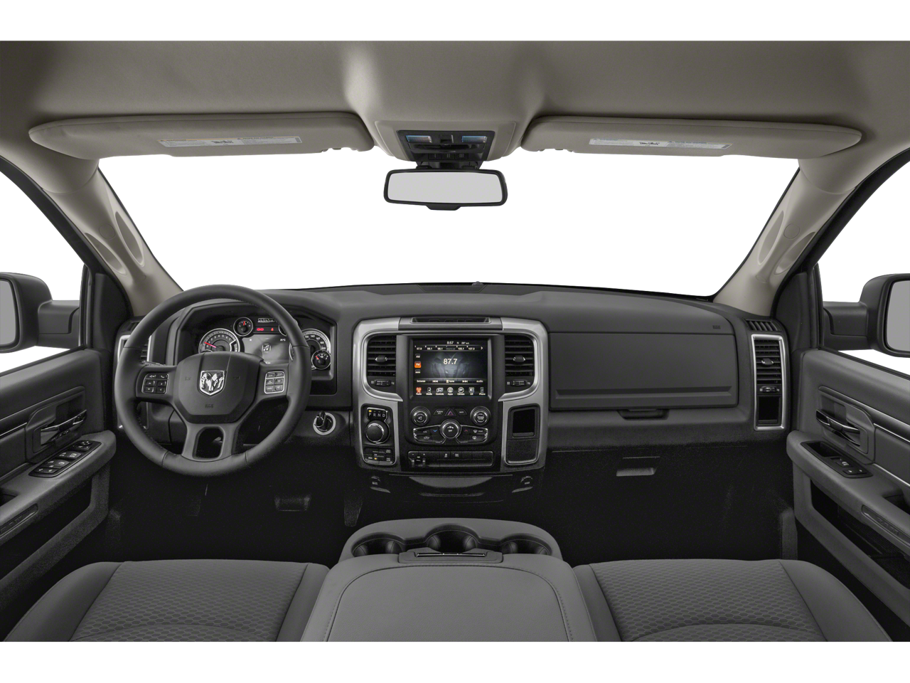 THIS VEHICLE INCLUDES THE FOLLOWING FEATURES AND OPTIONS: 3.21 Rear Axle Ratio, 4-Wheel Disc Brakes, 40/20/40 Split Bench Seat, 6 Speakers, ABS brakes, Active Grille Shutters, Air Conditioning, Alloy wheels, AM/FM radio: SiriusXM, Audio Input Jack for Mobile Devices, Black Exterior Mirrors, Brake assist, Bumpers: chrome, Center Hub, Cloth 40/20/40 Bench Seat, Compass, Delay-off headlights, Driver door bin, Dual front impact airbags, Dual front side impact airbags, Electronic Shift, Electronic Stability Control, Engine Calibration Flash, V2, Exterior Mirrors w/Heating Element, Front anti-roll bar, Front Armrest w/3 Cupholders, Front Center Armrest w/Storage, Front reading lights, Front wheel independent suspension, Fully automatic headlights, GPS Antenna Input, Heated door mirrors, Illuminated entry, Integrated Voice Command w/Bluetooth®, Low tire pressure warning, Occupant sensing airbag, Outside temperature display, Overhead airbag, Overhead console, Panic alarm, ParkView Rear Back-Up Camera, Passenger door bin, Passenger vanity mirror, Power door mirrors, Power steering, Power windows, Radio data system, Radio: Uconnect 3 w/5 Display, Rear anti-roll bar, Rear seat center armrest, Rear step bumper, Remote keyless entry, Remote USB Port, Remote USB Port - Charge Only, Rotary Shifter-Black, Speed control, Storage Tray, Tachometer, Tilt steering wheel, Tip Start, Traction control, Trip computer, Variably intermittent wipers, and Voltmeter.