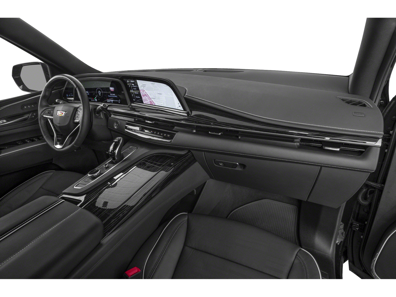This Vehicle Includes the Following Options: Preferred Equipment Group 1SC (Adaptive Cruise Control, AKG Studio 19-Speaker Audio System, Automatic Seat Belt Tightening, Body-Color Door Handles, Door Lock & Latch Shields, Electronic Limited-Slip Differential, Enhanced Automatic Emergency Braking, Enhanced Automatic Parking Assist, Glass Breakage Sensor, Heated & Ventilated Driver & Front Passenger Seats, Hitch Guidance w/Hitch View, Integrated Trailer Brake Controller, Power Panoramic Tilt-Sliding Sunroof, Rear Camera Mirror, Rear Camera Mirror Washer, Rear Cross Traffic Alert, Reconfigurable Full-Color Head-Up Display, Reverse Automatic Braking, Running Board Assist Steps, Smart Trailer Integration Indicator, Theft-Deterrent Alarm System, Trailer Side Blind Zone Alert, Vehicle Inclination Sensor, and Vehicle Interior Movement Sensor), Touring Package (Air Ride Adaptive Suspension, Illuminating Front & Rear Sill Plates, and Soft Closing Front & Rear Doors), AWD, 16.9 Diagonal OLED Infotainment Screen, 19 Speakers, 2-Presets Memory For Driver Seat Adjuster, 3.23 Axle Ratio, 3rd row seats: split-bench, 4-Way Power Driver Lumbar Seat Adjuster, 4-Way Power Front Passenger Lumbar Seat Adjuster, 4-Wheel Disc Brakes, 8-Way Power Driver Seat Adjuster, 8-Way Power Front Passenger Seat Adjuster, ABS brakes, Adaptive suspension, Air Conditioning, Alloy wheels, AM/FM radio: SiriusXM with 360L, Apple CarPlay/Android Auto, Audio memory, Auto High-beam Headlights, Auto tilt-away steering wheel, Auto-dimming door mirrors, Automatic temperature control, Brake assist, Bumpers: body-color, Compass, Delay-off headlights, Driver door bin, Driver vanity mirror, Dual front impact airbags, Dual front side impact airbags, Electronic Stability Control, Emergency communication system: OnStar and Cadillac connected services capable, Exterior Parking Camera Rear, Four wheel independent suspension, Front anti-roll bar, Front Bucket Seats, Front Center Armrest w/Storage, Front dual zone A/C, Front reading lights, Fully automatic headlights, Garage door transmitter, HD Radio, Heads-Up Display, Heated door mirrors, Heated Driver & Front Passenger Seats, Heated front seats, Heated rear seats, Heated steering wheel, Illuminated entry, Leather Seating Surfaces w/Precision Perf Inserts, Low tire pressure warning, Magnetic Ride Control Suspension, Memory seat, Navigation System, Not Equipped w/2nd Row Express-Up Window Control, Not Equipped w/4-Way Driver & Fr Pass Pwr Lumbar, Occupant sensing airbag, Outside temperature display, Overhead airbag, Overhead console, Panic alarm, Passenger door bin, Passenger vanity mirror, Power door mirrors, Power driver seat, Power Liftgate, Power moonroof, Power passenger seat, Power steering, Power windows, Power-Retractable Assist Steps, Radio data system, Radio: AM/FM w/Navigation, Rain sensing wipers, Rear air conditioning, Rear anti-roll bar, Rear reading lights, Rear window defroster, Rear window wiper, Remote keyless entry, Security system, SiriusXM w/360L, Speed control, Split folding rear seat, Spoiler, Steering wheel memory, Steering wheel mounted audio controls, Super Cruise, Tachometer, Teen Driver, Telescoping steering wheel, Tilt steering wheel, Traction control, Trip computer, Turn signal indicator mirrors, Variably intermittent wipers, Ventilated front seats, Voltmeter, Wheels: 22 12-Spoke Polished Alloy, and Wireless Apple CarPlay/Wireless Android Auto.