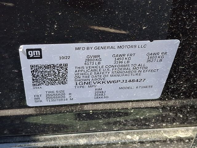 This Vehicle Includes the Following Options: Floor Liner Package (LPO) (1st & 2nd Row All-Weather Floor Liner (LPO), 3rd Row All-Weather Floor Liner (LPO), and Integrated Cargo Liner (LPO)), Preferred Equipment Group 1LZ (Heated 2nd Row Outboard Position Seats, Heated Driver & Front Passenger Seats, and Ventilated Driver & Front Passenger Seats), Redline Edition (Black Bowtie, Black Door Handles, Black Roof Rails, Dual SkyScape 2-Panel Power Sunroof, Ornamentation, Redline Accent Decals (LPO), and Wheels: 20 Gloss Black Painted Alum w/Red Stripes), AWD, 10 Speakers, 3.49 Axle Ratio, 3rd row seats: split-bench, 4-Wheel Disc Brakes, 6-Way Power Front Passenger Seat, 8-Way Power Driver Seat Adjuster, ABS brakes, Air Conditioning, Alloy wheels, AM/FM radio: SiriusXM with 360L, Apple CarPlay/Android Auto, Auto High-beam Headlights, Auto-dimming door mirrors, Auto-dimming Rear-View mirror, Automatic temperature control, Bose Premium 10-Speaker Audio System Feature, Brake assist, Bumpers: body-color, Compass, Delay-off headlights, Driver door bin, Driver vanity mirror, Dual front impact airbags, Dual front side impact airbags, Electronic Stability Control, Emergency communication system, Exterior Parking Camera Rear, Four wheel independent suspension, Front anti-roll bar, Front Bucket Seats, Front Center Armrest, Front dual zone A/C, Front Passenger 2-Way Power Lumbar, Front reading lights, Fully automatic headlights, Garage door transmitter, Heated door mirrors, Heated front seats, Heated rear seats, Heated steering wheel, Illuminated entry, Leather steering wheel, Low tire pressure warning, Memory seat, Navigation System, Occupant sensing airbag, Outside temperature display, Overhead airbag, Overhead console, Panic alarm, Passenger door bin, Passenger vanity mirror, Perforated Leather-Appointed Seat Trim, Power door mirrors, Power Driver Lumbar Control, Power driver seat, Power Liftgate, Power passenger seat, Power steering, Power windows, Premium audio system: Chevrolet Infotainment 3 Plus, Radio data system, Radio: Chevrolet Infotainment 3 Plus System w/Navi, Rear air conditioning, Rear anti-roll bar, Rear reading lights, Rear window defroster, Rear window wiper, Remote keyless entry, Security system, SiriusXM w/360L, Speed control, Speed-sensing steering, Spoiler, Steering wheel memory, Steering wheel mounted audio controls, Tachometer, Telescoping steering wheel, Tilt steering wheel, Traction control, Trip computer, Turn signal indicator mirrors, Variably intermittent wipers, Ventilated front seats, Voltmeter, and Wheels: 20 Metallic Machined-Face Aluminum.