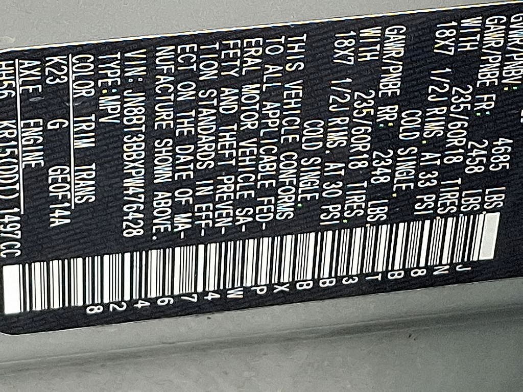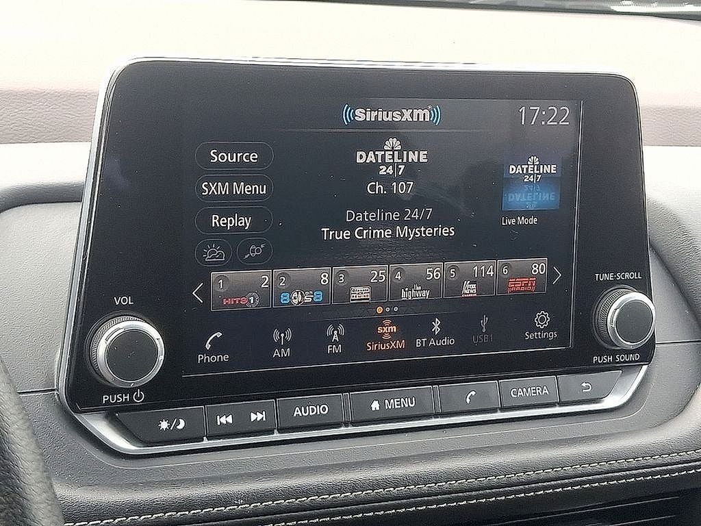 THIS VEHICLE INCLUDES THE FOLLOWING FEATURES AND OPTIONS: AWD, 18 Aluminum Alloy Wheels, 4-Wheel Disc Brakes, 5.604 Axle Ratio, 6 Speakers, ABS brakes, Air Conditioning, Alloy wheels, AM/FM Radio, AM/FM radio: SiriusXM, Auto High-beam Headlights, Automatic temperature control, Brake assist, Bumpers: body-color, Cloth Seat Trim, Delay-off headlights, Driver door bin, Driver vanity mirror, Dual front impact airbags, Dual front side impact airbags, Electronic Stability Control, Emergency communication system: NissanConnect Services, Four wheel independent suspension, Front anti-roll bar, Front Bucket Seats, Front Center Armrest, Front dual zone A/C, Front reading lights, Fully automatic headlights, Heated door mirrors, Illuminated entry, Knee airbag, Low tire pressure warning, NissanConnect featuring Apple CarPlay and Android Auto, Occupant sensing airbag, Outside temperature display, Overhead airbag, Overhead console, Panic alarm, Passenger door bin, Passenger vanity mirror, Power door mirrors, Power driver seat, Power steering, Power windows, Radio data system, Rear anti-roll bar, Rear Parking Sensors, Rear seat center armrest, Rear side impact airbag, Rear window defroster, Rear window wiper, Remote keyless entry, Speed control, Speed-Sensitive Wipers, Split folding rear seat, Spoiler, Steering wheel mounted audio controls, Tachometer, Telescoping steering wheel, Tilt steering wheel, Traction control, Trip computer, and Variably intermittent wipers. 28/35 City/Highway MPG