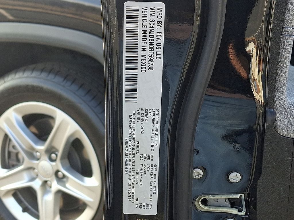 THIS VEHICLE INCLUDES THE FOLLOWING FEATURES AND OPTIONS: Quick Order Package 29J Latitude, 4WD, 17 x 7.0 Aluminum Wheels, 17 x 7 Aluminum Wheels, 3.73 Final Drive Ratio, 4-Wheel Disc Brakes, 6 Speakers, ABS brakes, Air Conditioning, Alloy wheels, AM/FM radio: SiriusXM, Auto High-beam Headlights, Brake assist, Bumpers: body-color, Compass, Delay-off headlights, Driver door bin, Driver vanity mirror, Dual front impact airbags, Dual front side impact airbags, Electronic Stability Control, Emergency communication system: Jeep Connect, Four wheel independent suspension, Front anti-roll bar, Front Bucket Seats, Front Center Armrest w/Storage, Front fog lights, Front License Plate Bracket, Front reading lights, Fully automatic headlights, Heated door mirrors, Illuminated entry, Knee airbag, Leather Shift Knob, Leather steering wheel, Low tire pressure warning, Occupant sensing airbag, Outside temperature display, Overhead airbag, Overhead console, Panic alarm, ParkView Rear Back-Up Camera, Passenger door bin, Passenger vanity mirror, Power door mirrors, Power steering, Power windows, Premium Cloth/Vinyl Bucket Seats, Radio: Uconnect 5 w/10.1 Display, Rear anti-roll bar, Rear seat center armrest, Rear window defroster, Rear window wiper, Remote keyless entry, Security system, Speed control, Split folding rear seat, Spoiler, Steering wheel mounted audio controls, Tachometer, Telescoping steering wheel, Tilt steering wheel, Traction control, Trip computer, and Variably intermittent wipers. Odometer is 5032 miles below market average! 24/32 City/Highway MPG