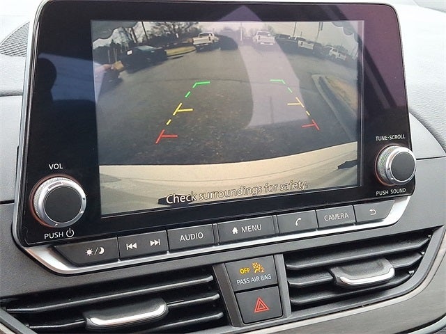 This Vehicle Includes the Following Options: CVT with Xtronic, 17 Alloy Wheels, 4-Wheel Disc Brakes, 6 Speakers, ABS brakes, Air Conditioning, Alloy wheels, AM/FM radio: SiriusXM, Auto High-beam Headlights, Blind Spot Warning, Brake assist, Bumpers: body-color, Cloth Seat Trim, Delay-off headlights, Driver door bin, Driver vanity mirror, Dual front impact airbags, Dual front side impact airbags, Electronic Stability Control, Floor Mats/Trunk Mat/Hideaway Net, Four wheel independent suspension, Front anti-roll bar, Front Bucket Seats, Front Center Armrest, Front reading lights, Fully automatic headlights, Illuminated entry, Knee airbag, Low tire pressure warning, NissanConnect featuring Apple CarPlay, Occupant sensing airbag, Outside temperature display, Overhead airbag, Overhead console, Panic alarm, Passenger door bin, Passenger vanity mirror, Power door mirrors, Power driver seat, Power steering, Power windows, Radio data system, Radio: AM/FM Audio System, Rear anti-roll bar, Rear Parking Sensors, Rear reading lights, Rear seat center armrest, Rear side impact airbag, Rear window defroster, Remote keyless entry, Security system, Speed control, Speed-sensing steering, Speed-Sensitive Wipers, Split folding rear seat, Steering wheel mounted audio controls, Tachometer, Telescoping steering wheel, Tilt steering wheel, Traction control, Trip computer, and Variably intermittent wipers.