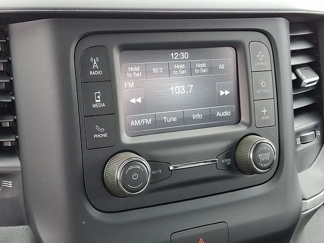 This Vehicle Includes the Following Options: Chrome Appearance Group (Bright Front Bumper, Bright Rear Bumper, Center Hub, Chrome Grille Surround, Chrome Headlamp Bezels, Matte Black Mesh w/Chrome Grille, and Wheels: 18 x 8.0 Steel Chrome Clad), Heavy Duty Snow Plow Prep Group, Quick Order Package 2GA Tradesman, Tradesman Level 1 Equipment Group (Black Exterior Mirrors, Exterior Mirrors Courtesy Lamps, Exterior Mirrors w/Heating Element, Exterior Mirrors w/Supplemental Signals, Front 1-Touch Down Power Windows, Manual Folding Exterior Mirrors, Manual Telescoping Mirrors, Mirror Running Lights, Overhead Console, Overhead Cupholder Lamp, Power Adjust Mirrors, Power Heated Folding Telescopic Mirrors, Power-Adjustable Convex Aux Mirrors, Remote Keyless Entry, Speed Sensitive Power Locks, and Upgraded Door Trim Panel), 17 x 7.5 Steel Styled Wheels, 2-Way Front Head Restraints, 220 Amp Alternator, 3.73 Axle Ratio, 4 Speakers, 4-Wheel Disc Brakes, 40/20/40 Split Bench Seat, ABS brakes, Air Conditioning, AM/FM radio, Brake assist, Compass, Delay-off headlights, Driver door bin, Dual front impact airbags, Dual front side impact airbags, Electronic Stability Control, Electronically Controlled Throttle, Emergency communication system: SiriusXM Guardian, For Details, Visit DriveUconnect.com, Front anti-roll bar, Front Armrest w/Cupholders, Front Center Armrest w/Storage, Front License Plate Bracket, Front reading lights, Fully automatic headlights, Global Telematics Box Module (TBM), GPS Antenna Input, Heavy Duty Vinyl 40/20/40 Split Bench Seat, I/P Mounted Auxiliary Switches, Illuminated entry, Integrated Voice Command w/Bluetooth®, Low tire pressure warning, Manual Adjust 4-Way Driver Seat, Manual Adjust 4-Way Front Passenger Seat, Occupant sensing airbag, Outside temperature display, Overhead airbag, ParkView Rear Back-Up Camera, Passenger door bin, Passenger vanity mirror, Power steering, Radio data system, Radio: Uconnect 3 w/5 Display, Rear anti-roll bar, Rear step bumper, Remote USB Port - Charge Only, Speed control, Tachometer, Tilt steering wheel, Tip Start, Traction control, Trailer Brake Control, Trailer Light Check, Variably intermittent wipers, and VoltmeteR.